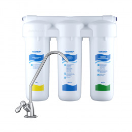 Три картриджа последовательно очищают воду от видимых механических примесей и растворенных вредных веществ. Минимализм конструкции и высокоэффективные сорбенты позволяют Трио обеспечить отличное соотношение стоимости владения фильтром к высокого качества очистки.