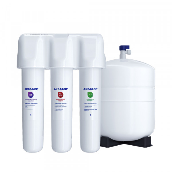 Обратноосмотические фильтры используются для абсолютной защиты от накипи, т.к. полностью устраняют соли жесткости из воды.даМинерализацияПроисходит после финишной очистки воды. Необходима прежде всего в фильтре обратного осмоса, поскольку такой фильтр полностью устраняет из воды все примеси, в том числе минералы. Минералы добавляются в оптимальной концентрации - для пользы и привычного вкуса воды.нетПостфильтрацияФинальный этап очистки воды: картриджи постфильтрации удаляют самые мелкие механические частицы и кондиционируют воду, придавая ей более приятный вкус.даНакопительная емкостьОбычно нужна в фильтрах обратного осмоса. Глубокая фильтрация требует времени. Чтобы Вам не приходилось ждать, пока вода наберется в чайник или кастрюлю, почти во всех моделях используется накопительный бак для чистой воды или другая емкость. В стандартном фильтре обратного осмоса под мойку воды в баке достаточно для семьи из 5-6 человек.даФильтрующий модуль в комплектедаОтдельный краннетДавление в водопроводе не менее, атм3,5Давление в водопроводе не более, атмМаксимальное давление воды на входе в систему, при котором возможна стабильная работа фильтра.6,5Исходная водаЖесткая вода – вода с избытком минеральных солей. От нее появляется накипь в чайнике, известковый налет на сантехнике и разводы на посуде. Мягкая вода – та, в которой мало минеральных солей. Нет накипи в чайнике и разводов на посуде. Фильтры для мутной воды и фильтры от ржавчины, как правило, имеют несколько стадий очистки и дополнительный полипропиленовый картридж. Он задерживает механические частицы ила, песка и ржавчины и защищает картриджи более глубокой очистки.любаяУстраняет мутностьМутность водопроводной воды может говорить о том, что в ней много мелких механических частиц. Важно, чтобы в фильтре был установлен дополнительные картридж механической предфильтрации (полипропиленовый) - он продлит жизнь остальным картриджам более тонкой очистки.даУстраняет ржавчину, бурый осадокЛюбой фильтр под мойку удалит из воды крупные и мелкие частицы ржавчины. Некоторые фильтры имеют повышенный ресурс по железу: они дольше служат в такой воде, поскольку лучше подходят для удаления из воды железа и механических частиц ржавчины.даЗащита от бактерийВсе проточные фильтры в той или иной степени защищают от бактерий. Например, добавление серебра препятствует их размножению. Это стандартная степень защиты. Если в семье есть дети, пожилые люди или аллергики, воду рекомендуется обеззараживать, то есть полностью удалять микроорганизмы. Повышенную защиту от бактерий дают фильтры с половолоконной мембраной. Это пучок трубок с порами размером 0,1 микрон (что в 1000 раз тоньше человеческого волоса) - бактерии и яйца паразитов “застревают”, как в “сите”. Полученную воду не придется кипятить и можно использовать для приготовления детского питания. Абсолютную защиту обеспечат фильтры обратного осмоса, которые не пропускают через обратноосмотическую мембрану ничего, кроме воды.повышеннаяПодходит для детей или аллергиковВрачи-иммунологи советуют дополнительно очищать воду для аллергиков, детей и людей с чувствительным пищеварением. Им нужна повышенная защита от бактерий, которую дают фильтры с половолоконной мембраной: например, Аквафор Кристалл ЭКО. Такие фильтры обеззаражив