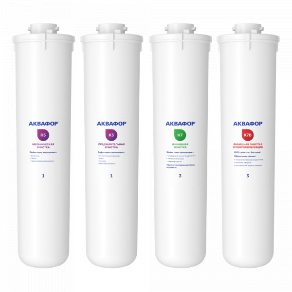 • Комплект сменных модулей глубокой очистки. Оптимален для мягкой воды. В условиях жесткой воды он полностью выполняет функцию глубокой очистки от вредных примесей, однако не снижает минерализацию. Поэтому, если при кипячении на нагревательных элементах образуется белый налет, рекомендуем рассмотреть специализированный комплект с умягчающим модулем для глубокой очистки воды.