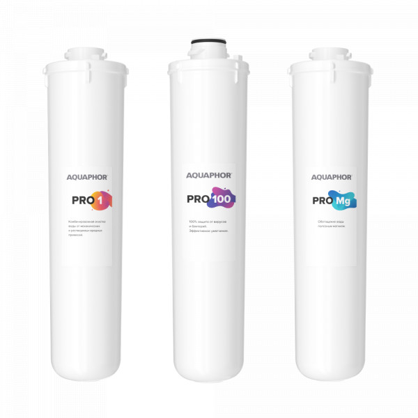 • В комплект входит комбинация из трех сменных модулей Pro 1, Pro 100 и Pro Mg для обратноосмотической системы Аквафор Osmo Pro 100. Производительность мембраны Pro 100 составляет 380 литров (100 галлонов) в сутки.*