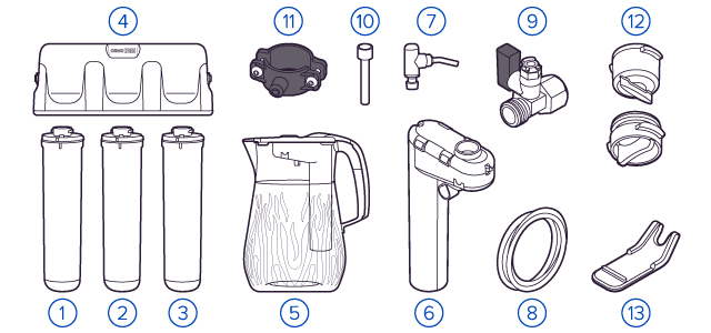 В фильтрах обратного осмоса установлена мембрана, которая не пропускает ничего, кроме воды (вода проходит через неё под давлением). Такой фильтр делает безопасной водопроводную воду любого качества, удаляя все вредные примеси: бактерии, вирусы, хлор, тяжелые металлы, нитраты, фармацевтику. Обратноосмотические фильтры используются для абсолютной защиты от накипи, т.к. полностью устраняют соли жесткости из воды. |