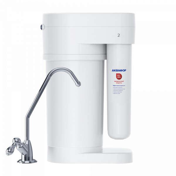 Обратноосмотические фильтры используются для абсолютной защиты от накипи, т.к. полностью устраняют соли жесткости из воды.даЧисло ступеней очисткиКартриджи последовательно очищают воду и от видимых примесей, и от растворенных. Первый картридж задерживает более крупные частицы, а каждый последующий - более мелкие. Чем больше ступеней - тем лучше фильтр очистит воду: поймает более мелкие видимые частицы ржавчины, песка и ила, успеет захватить из воды максимум растворенных примесей - хлора, нитратов, тяжелых металлов и других.3МинерализацияПроисходит после финишной очистки воды. Необходима прежде всего в фильтре обратного осмоса, поскольку такой фильтр полностью устраняет из воды все примеси, в том числе минералы. Минералы добавляются в оптимальной концентрации - для пользы и привычного вкуса воды.даНакопительная емкостьОбычно нужна в фильтрах обратного осмоса. Глубокая фильтрация требует времени. Чтобы Вам не приходилось ждать, пока вода наберется в чайник или кастрюлю, почти во всех моделях используется накопительный бак для чистой воды или другая емкость. В стандартном фильтре обратного осмоса под мойку воды в баке достаточно для семьи из 5-6 человек.даФильтрующий модуль в комплектедаОтдельный крандаДавление в водопроводе не менее, атм2,0Давление в водопроводе не более, атмМаксимальное давление воды на входе в систему, при котором возможна стабильная работа фильтра.6,5Материал корпусаПищевой пластик: Допущен к контакту с пищевыми продуктами. Нержавеющая сталь: Долговечный и безопасный корпус из нержавеющей пищевой стали.пищевой пластикУдобно менять модулидаМаксимальный шум при работе DWM, дБА59