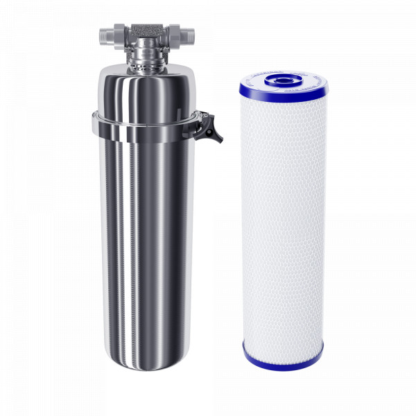 • Фильтр для питьевой воды из нержавеющей стали с удобным креплением. Глубоко очищает всю воду в доме, не снижая напор в системе. Модуль сочетает сразу несколько современных технологий фильтрации: карбонблок с волокном АКВАЛЕН и гранулированные сорбционные материалы.